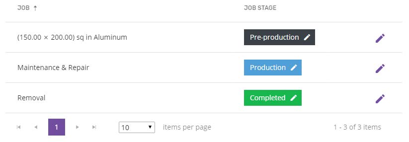 - Job stage – all the jobs are initially in “Pre-production”. Once the work on a job has been started, it can be moved to the next job stage.