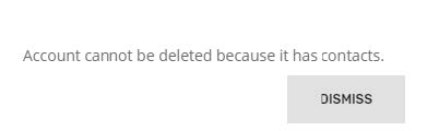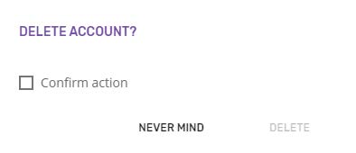 An Account can be deleted by clicking the DELETE button from the header, which will open a confirmation pop-up.
